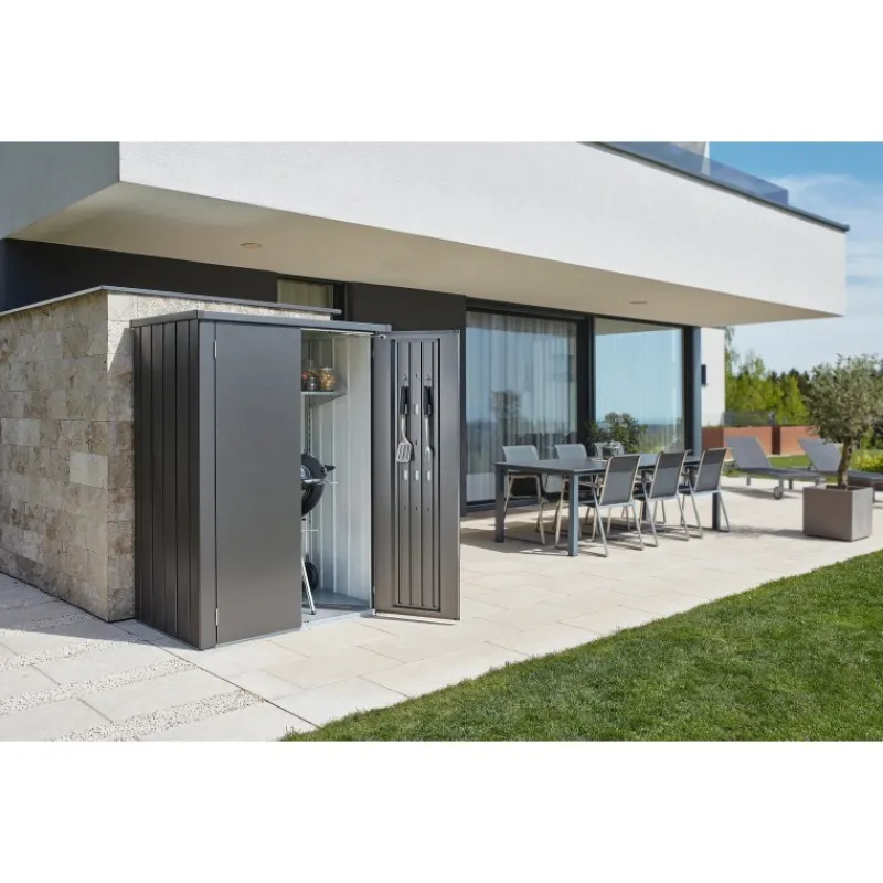 L’armadio da terrazza Romeo® crea spazio senza occuparne molto. Grazie ai suoi scaffali unici, ai pistoni a gas che permettono una chiusura dolce dei battenti e molti altri dettagli tipici Biohort, l’armadio da esterno si fa apprezzare da tutti coloro che amano trascorrere le proprie giornate in balcone, terrazza o giardino.