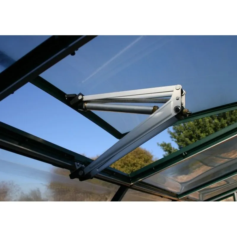 L’apri tetto automatico è stato progettato per controllare automaticamente livelli di umidità e temperatura. Fornisce ventilazione aggiuntiva per tutte le serre Palram – Canopia, rendendo il giardinaggio più semplice. Mentre l’aria all’interno della serra tende a riscaldarsi, la ventola si apre gradualmente per garantire una corretta circolazione nella serra fino a raggiungere la temperatura ottimale. Il braccio della ventola contiene cera che si espande quando si riscalda e si contrae quando si raffredda. L’apri tetto automatico funziona senza elettricità.