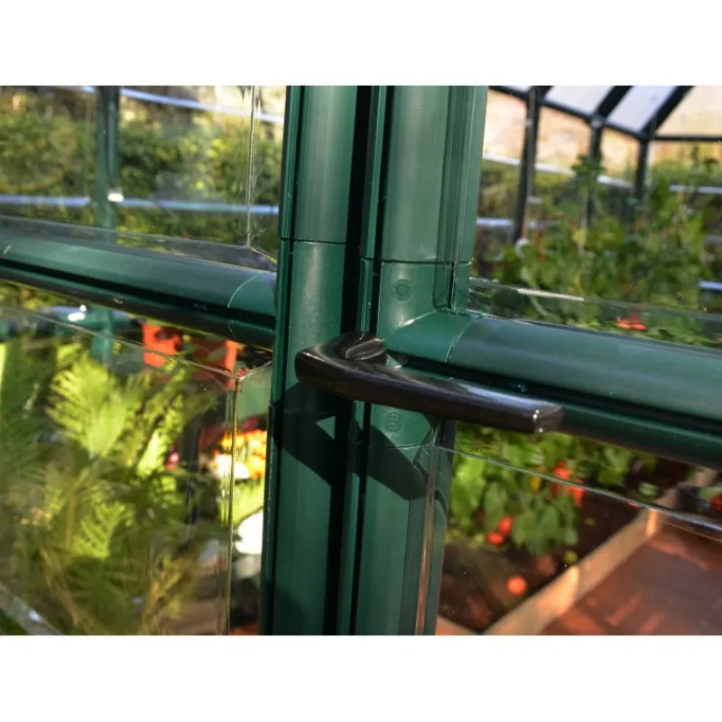 La serra Palram – Canopia Grand Gardener è caratterizzata da un’elegante forma a fienile e da un design a finestra che rende la vostra serra splendida ancora prima che abbiate piantato qualcosa. L’enfasi sulla sicurezza è evidente dal telaio resistente ai pannelli in policarbonato estremamente sicuri. Il robusto telaio in resina estrusa, resistente alle intemperie e protetto dai raggi UV, con i suoi profili del tetto in alluminio, migliora sia l’isolamento totale che la durata. Le pareti laterali in policarbonato cristallino offrono una vista chiara, mentre i pannelli del tetto a doppia parete diffondono oltre l’80% della luce solare per una luce morbida e uniforme. L’attenzione ai dettagli prosegue attraverso il design del tetto che fornisce ampio spazio per la testa e più spazio al giardino, fino alle doppie porte che rendono facile entrare e uscire, anche con grandi vassoi di piante. C’è anche un’eccellente ventilazione grazie alla presa d’aria sul tetto, che fornisce un flusso d’aria e trattiene il calore quando le porte sono chiuse. Il montaggio con perno e serratura rende la serra Palram-CanopiaGrand Gardener perfetta per l’appassionato di coltivazione che vuole qualcosa di facile e bello