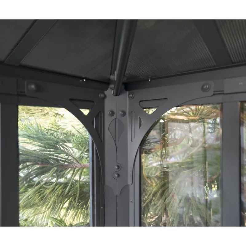 Ledro offre uno spazio ideale coperto per rilassarsi, utilizzabile anche come area spa, favorendo uso dell’area all’aperto senza rinunciare alla sicurezza degli interni. Questo meraviglioso e spazioso gazebo è progettato per essere usato tutto l’anno. Permette di passare più tempo rilassandoti, godendoti l’area spa o semplicemente stando in giardino. Usa la creatività per realizzare il tuo nuovo grande spazio, aggiungendo stile al tuo cortile. Usa il gazebo chiuso per organizzare feste ed eventi speciali con amici e parenti oppure come rifugio da veri uomini dove guardare partite. Questo gazebo da giardino include istruzioni complete per assemblaggio fai da te. Ideale per rendere casa e giardino più efficiente, offrendo tanto spazio per rilassarsi.