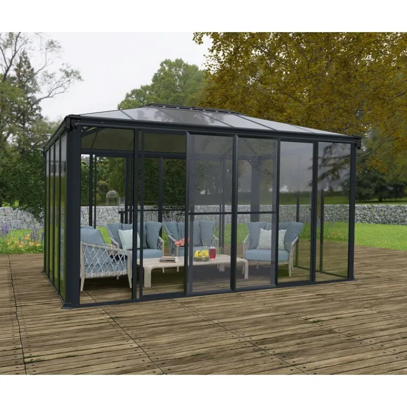 Scopri il Gazebo Chiuso in Alluminio Canopia Ledro 3X4.3 m: l’ideale per godere del tuo giardino tutto l’anno. Struttura robusta, resistente agli agenti atmosferici, con pannelli che bloccano i raggi UV. Perfetto per feste, area spa o come rifugio per guardare le partite. Facile da montare, non necessita di manutenzione. Trasforma il tuo spazio esterno con stile e funzionalità. Canopia, l’eccellenza per il tuo giardino.