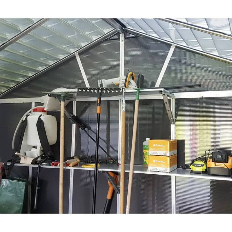 - Porta doppia ampia da 147,5 cm con soglia bassa – ideale per riporre piccoli trattori, tagliaerba, attrezzi personali e accessori da giardinaggio