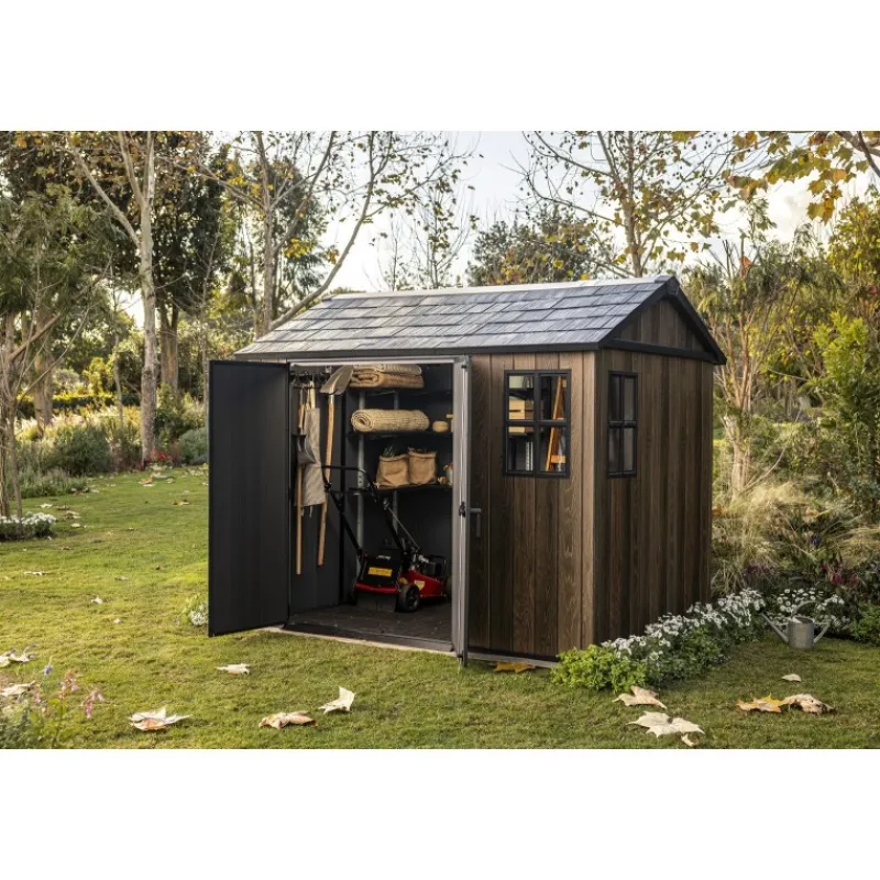 La Casetta Apex 759/975 unisce l’eleganza del legno naturale con la praticità e la resistenza della resina, valorizzata dalla raffinata finitura noce. Offre ampi spazi interni perfetti per organizzare il tuo giardino e, grazie alla possibilità di scegliere l’orientamento di porte e finestre, si adatta con flessibilità a ogni ambiente esterno. Solida, facile da montare e progettata per resistere agli agenti atmosferici, rappresenta la soluzione ideale per riporre mobili, attrezzi e accessori da giardino.