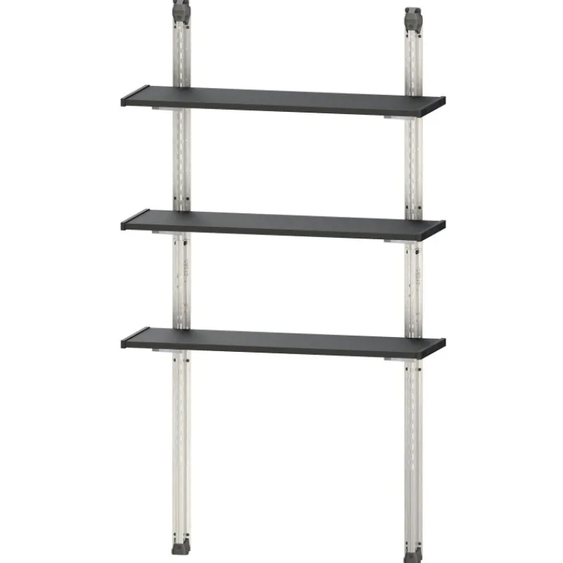 Struttura in metallo, 3 ripiani regolabili in altezza in resina, non ingombra il pavimento, facile da assemblare.