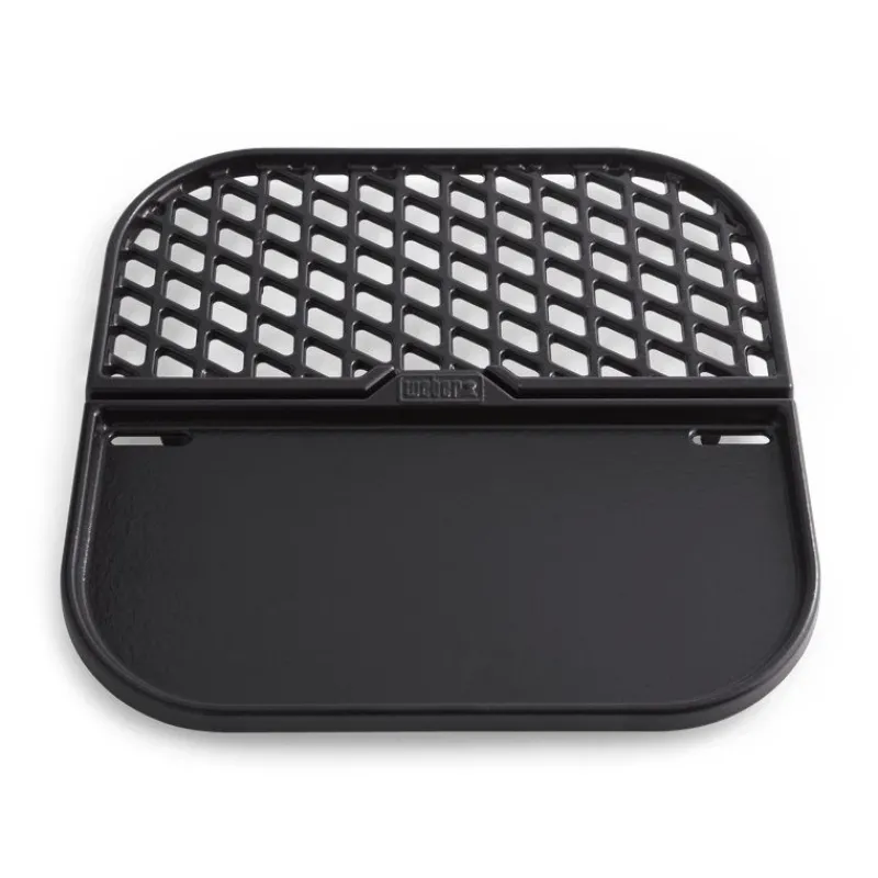 Hai sempre desiderato una piastra e una griglia di rosolatura in ghisa? Puoi avere entrambi in un comodo accessorio che puoi piegare in due per riporlo alla fine dell’utilizzo.